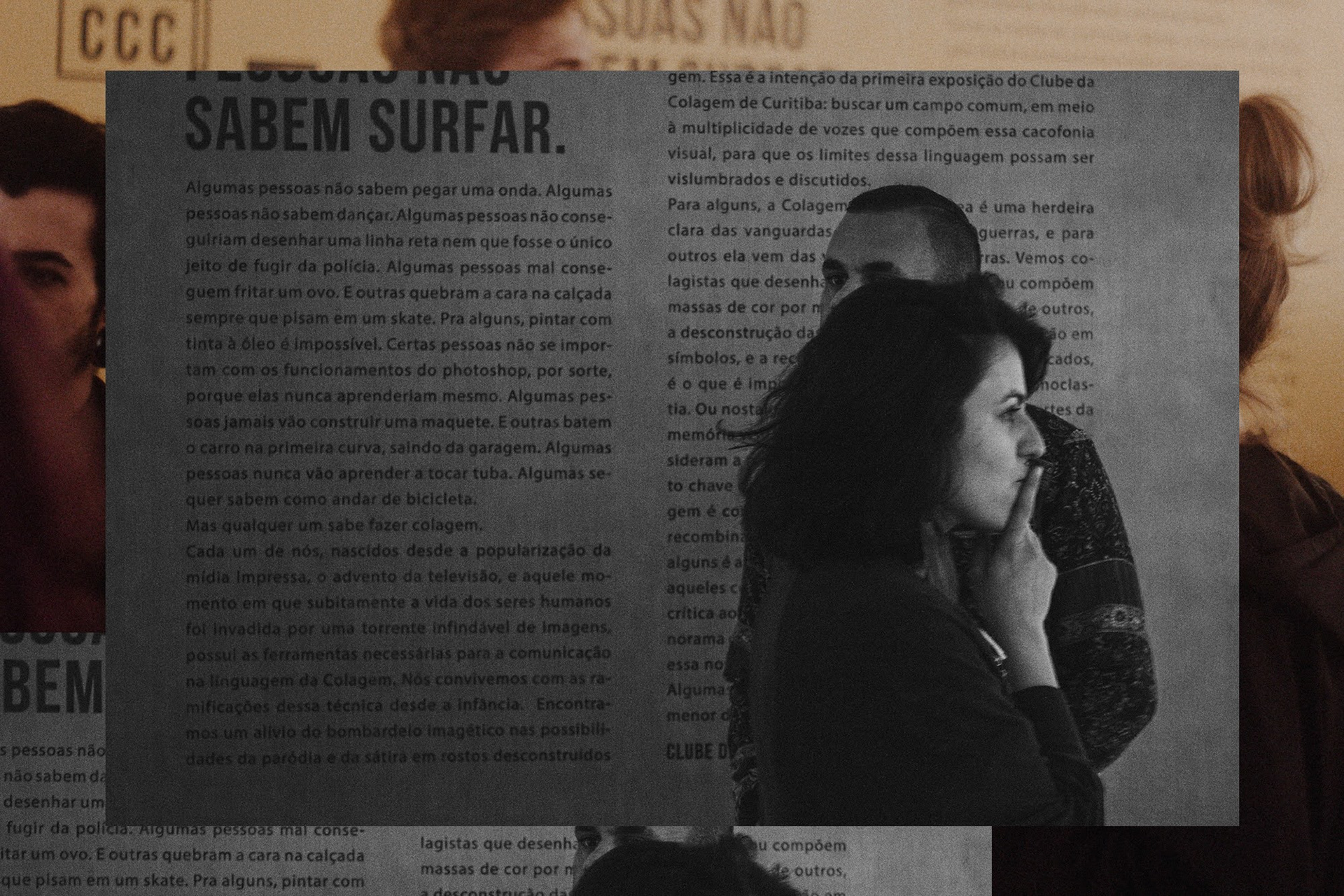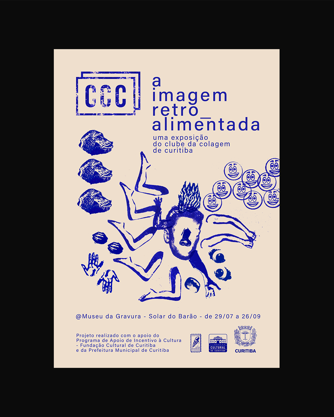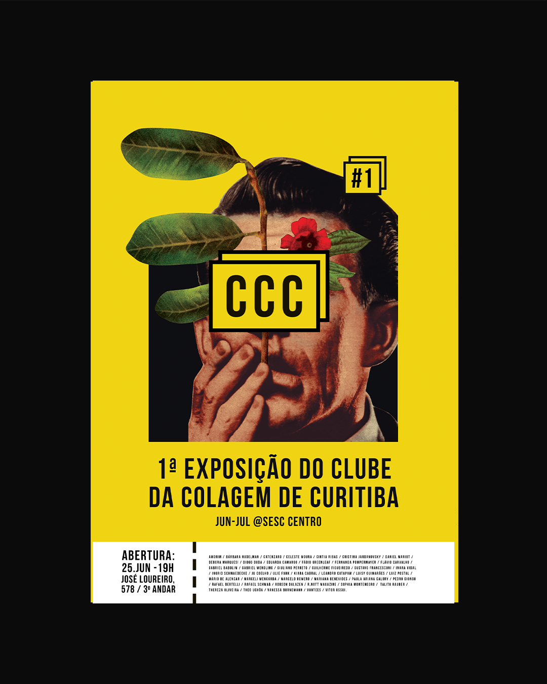 CLUBE DA COLAGEM DE CURITIBA é um coletivo artístico formado por Amorim, Bomju Coelho e Mário de Alencar, dedicado à prática e à difusão da linguagem da colagem. O grupo atua na produção e curadoria de exposições, oficinas e projetos artísticos.