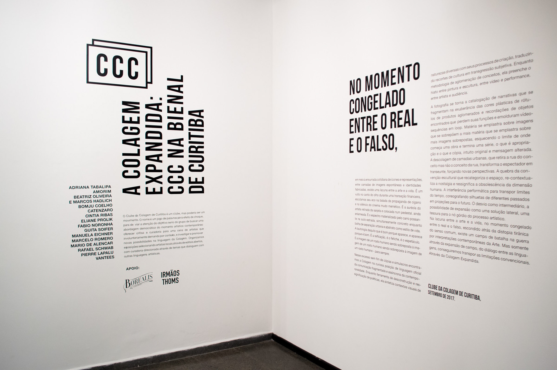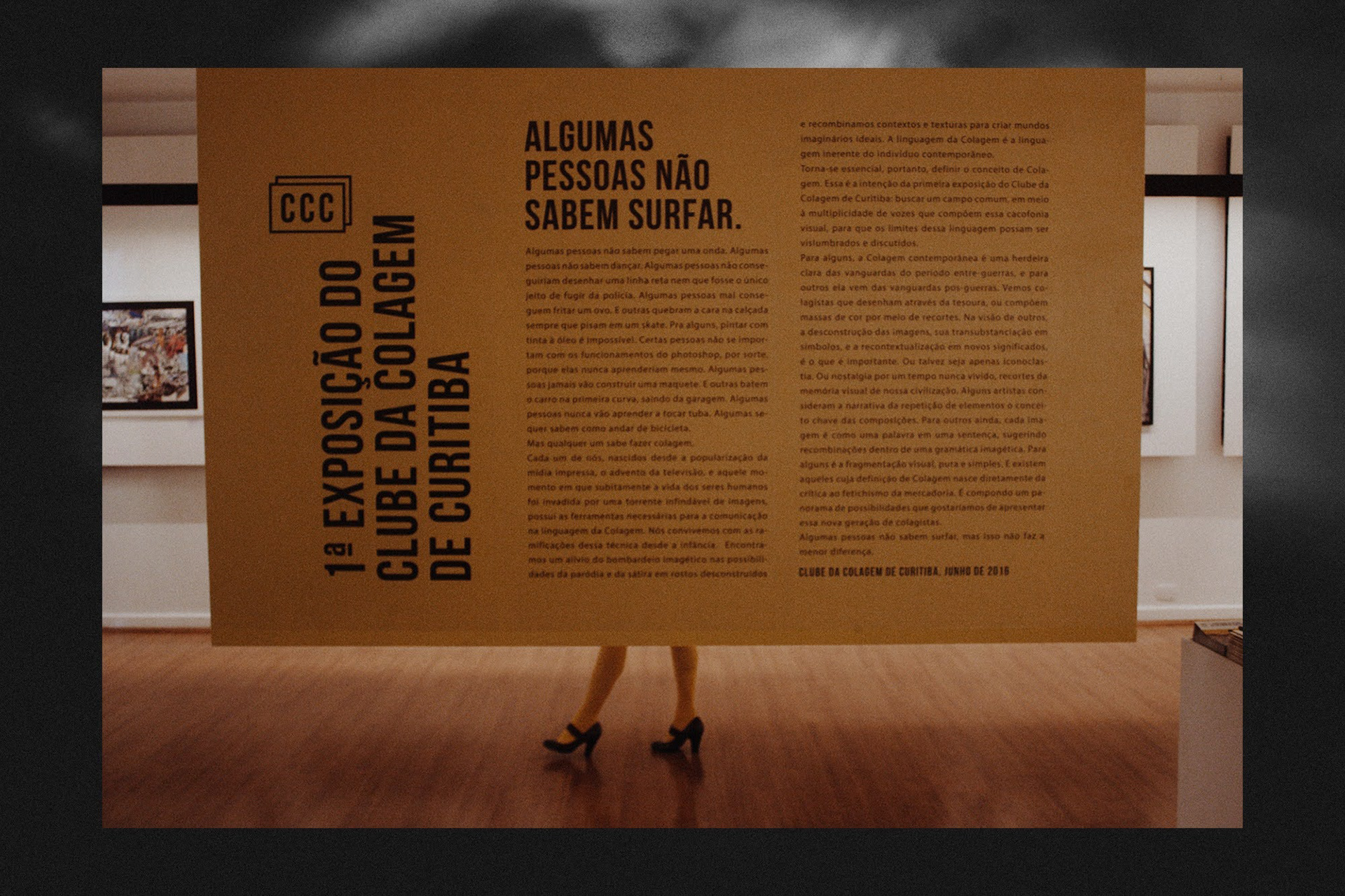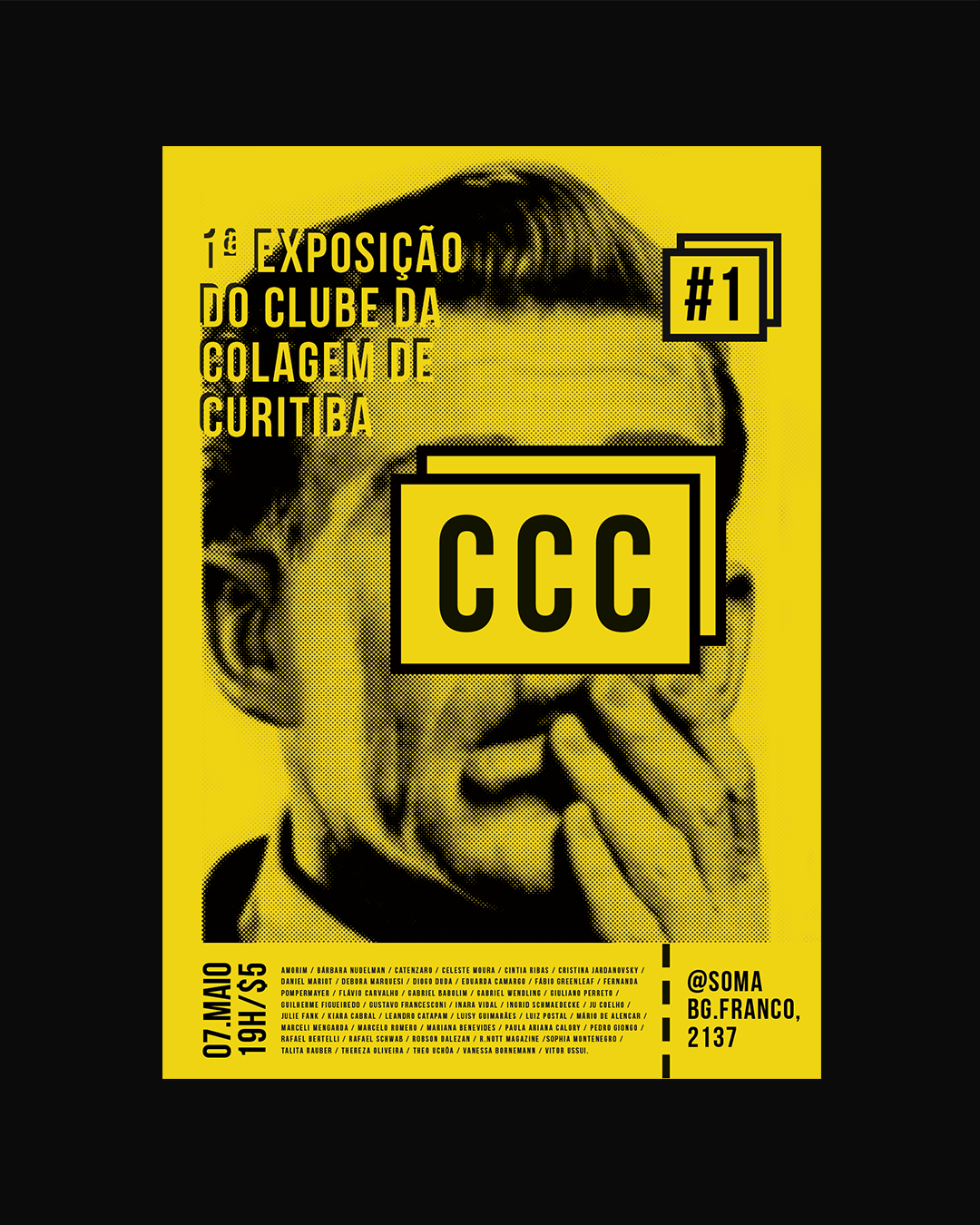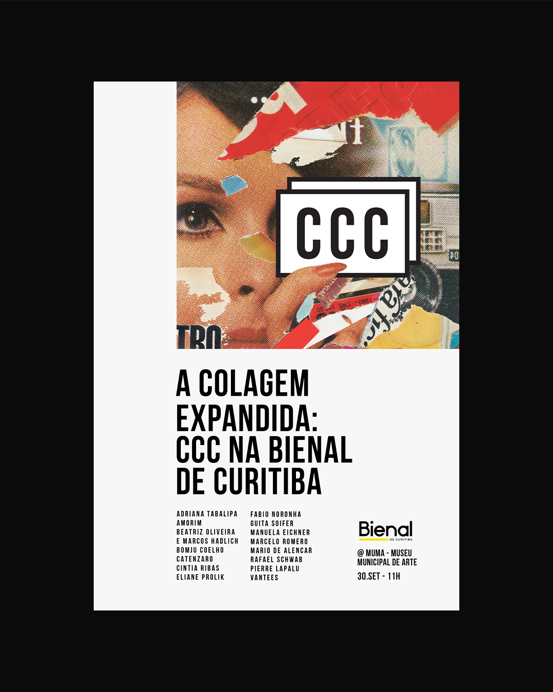CLUBE DA COLAGEM DE CURITIBA é um coletivo artístico formado por Amorim, Bomju Coelho e Mário de Alencar, dedicado à prática e à difusão da linguagem da colagem. O grupo atua na produção e curadoria de exposições, oficinas e projetos artísticos.