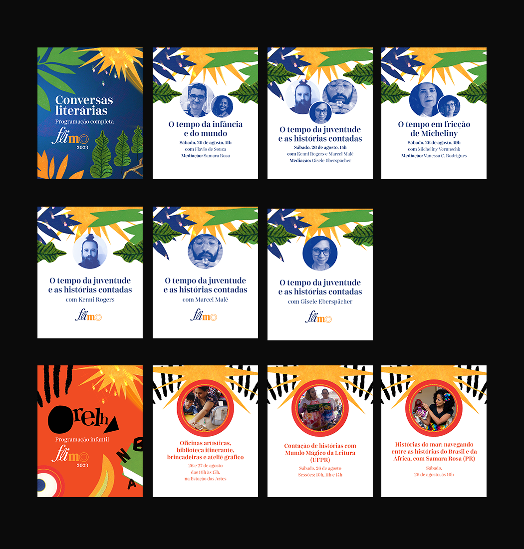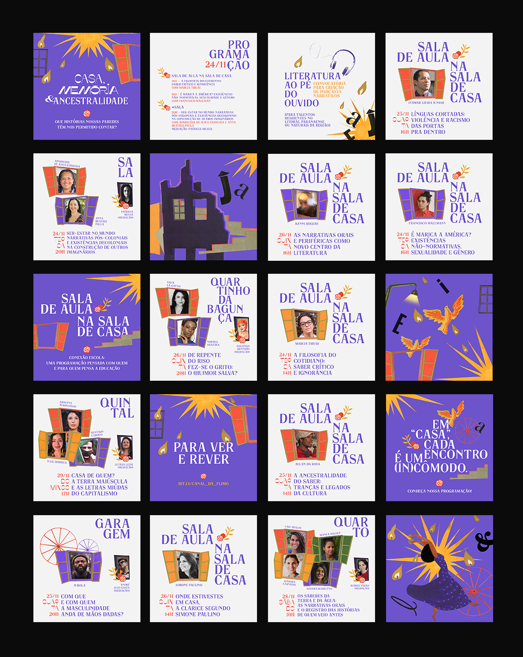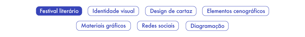 Neste trabalho, desenvolvemos a identidade visual do festival e o projeto gráfico de todas as edições, além de materiais de comunicação visual, sinalização, conteúdos para redes sociais, elementos cenográficos e a diagramação dos programas.