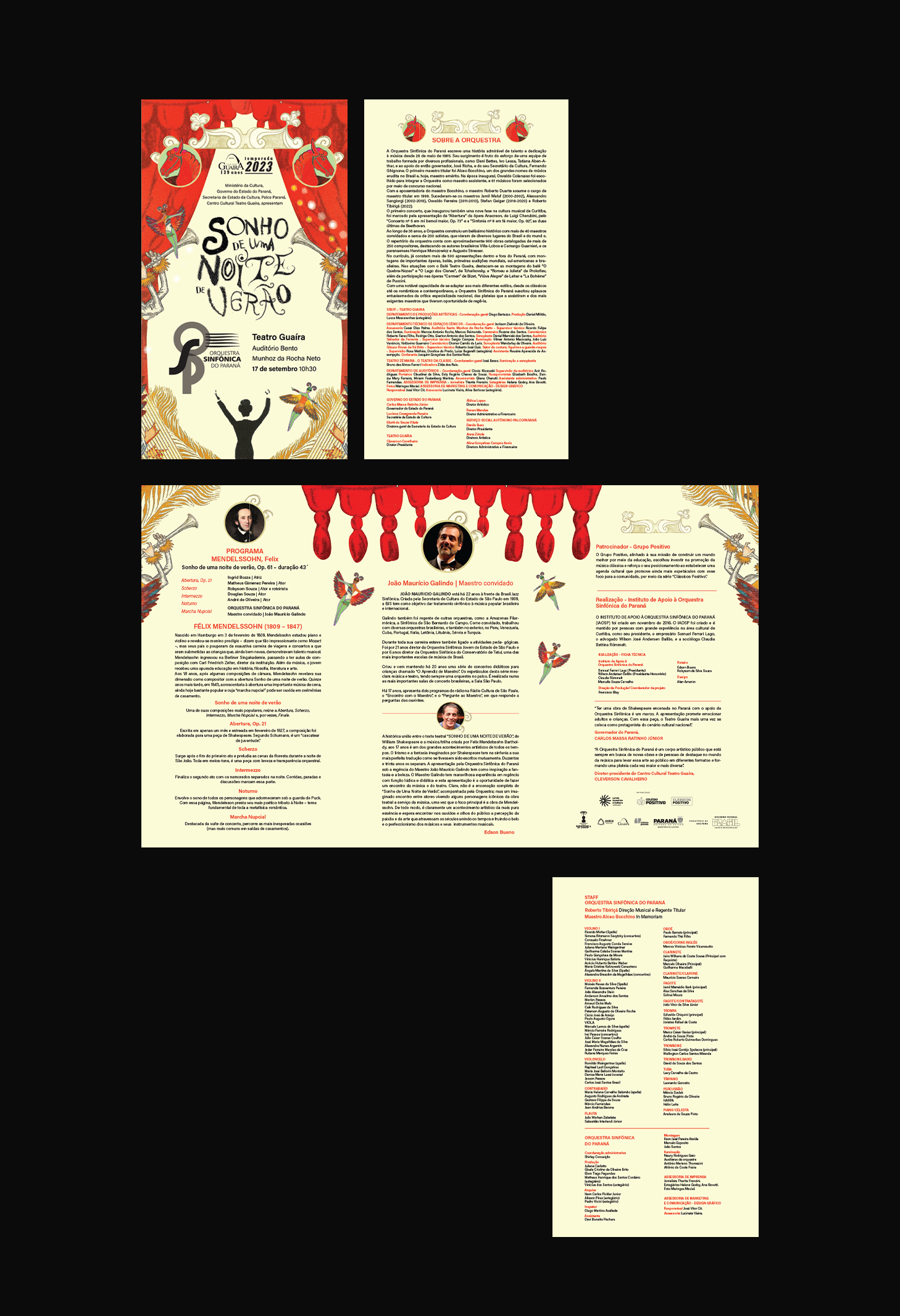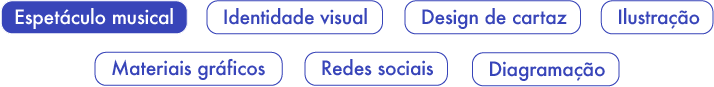 Neste projeto, desenvolvemos a identidade visual do espetáculo, o cartaz e sua aplicação em materiais gráficos de comunicação visual, além da diagramação do programa.