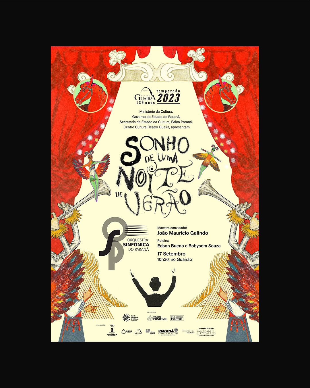 SONHO DE UMA NOITE DE VERÃO é um espetáculo de William Shakespeare, encenado em trechos com falas intercaladas pela execução da obra homônima do compositor Felix Mendelssohn. A produção foi realizada pelo Instituto de Apoio à Orquestra Sinfônica do Paraná (IAOSP), com patrocínio do Grupo Positivo, e apresentada no Teatro Guaíra.